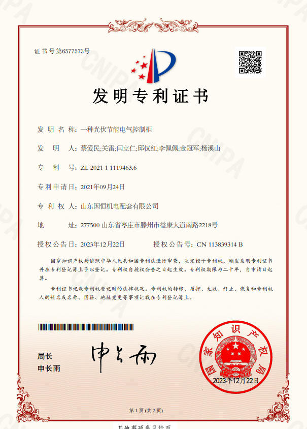 山東國恒機電配套有限公司簡      介 山東國恒機電配套有限公司是一家集新能源、高科技、智能化生產研發、制造、銷售為一體的綜合性現代化高新技術企業,公司座落在魯班故里、墨子之鄉滕州,公司始建于2005年,注冊資本1億元,擁有各類中、高級專業技術人員100余名。主營業務涉及高科技智能電力裝備、新能源儲備輸送,220kv及以下輸變電工程勘察設計、制造、銷售、安裝、售電和智能充電樁能效運維,并從事生產制造交直流充電樁設備、成套開關設備、各型號高低壓開關柜、箱式變電站等電氣設備,是棗莊地區唯一一家國資入股的新能源高端品牌企業。公司擁有獨立… 【查看更多】